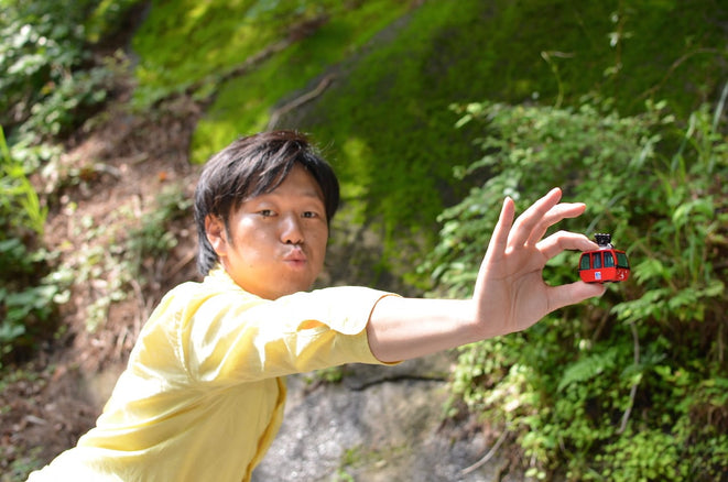 こんにちは! 店主の山岡です。 ちびっこに大人気の御在所ロープウエイグッズであり、日本で初めて発売されたロープウェイモデルのチョロQ、御在所ロープウエイ ゴンドラチョロQを片手に店主が全力で遊びます。 御在所ロープウエイ ゴンドラチョロQ 製造元はタカラトミーでございます。 ゴンドラ チョロQで遊んでみる 全力で取り組みたいと思います。しゅーーー! もちろんチョロQなので、走ります。 赤い閃光! カッチョいい。 引っ張って、離すと、走ります! それがチョロQです! 「ロープを伝って走るとかじゃないんだ。」 と思いますよね。しかしこれはチョロQです。 引っ張って、離すと、走ります! それがチョロQです! 知っている人と、知らない人の間で、だいぶ温度差ができる瞬間です。 ・・・ 引っ張って、離すと、走ります! それがチョロQです! 繰り返します。 引っ張って、離すと、走ります! それがチョロQです! ロープウェイっぽく遊んでみる たとえ玩具になったとはいえ、これは御在所ロープウエイのゴンドラです。 御在所岳に移動して、本物同様に鈴鹿国定公園にて、御在所ロープウエイのゴンドラチョロQで遊んでみました。しゅーーー! ちなみにロープを掴む黒いアームの部分が可動します。ハイクオリティな高い再現度は流石タカラトミーさんです! ここからは脳内イメージも交えてお送ります。。。 ギュゥ〜〜ン!ピロリロリロ〜ン、ピロリロリロ〜ン。(発車時の音) ジャカジャカジャカ♪ ♪そらで〜待っている〜 ♪ロープウェイに乗って、おい・で・っよ〜〜 しゅーーー ピィピィピィピィ(鳥のさえずり)サラサラサラ・・・(木々の揺れる音) ゴウン・・・ゴウン・・・ゴウン・・・ガッガッガッガッ(鉄塔を通過するときの音) 今通過中の地点は、このロープウエイのハイライトです。 ゴンドラから地上まで最も高い地点でおよそ150メートルあります。 ・・・ ・・・ ご乗車ありがとうございました! 足元にお気をつけになってお早くお降りください! ・・・ と、まぁこんな感じですね。(何が!?) 大人も子供も夢中になれる! 御在所ロープウエイゴンドラチョロQはカモシカ商店でお買い求めいただけます。 御在所ロープウエイ ゴンドラチョロQ